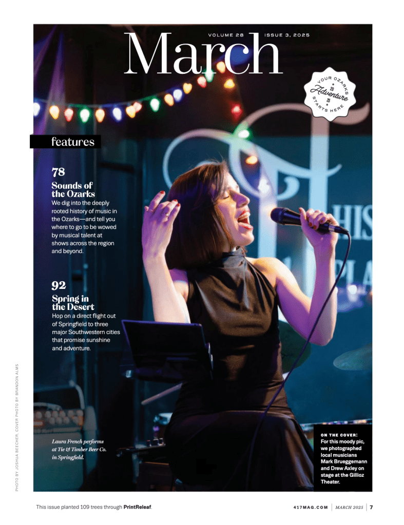 The March edition of 417 Magazine just arrived in the mail, and it’s surreal to see my face and name in print! This issue celebrates musicians across the Ozarks, and I’m honored to be included alongside so many artists I admire.